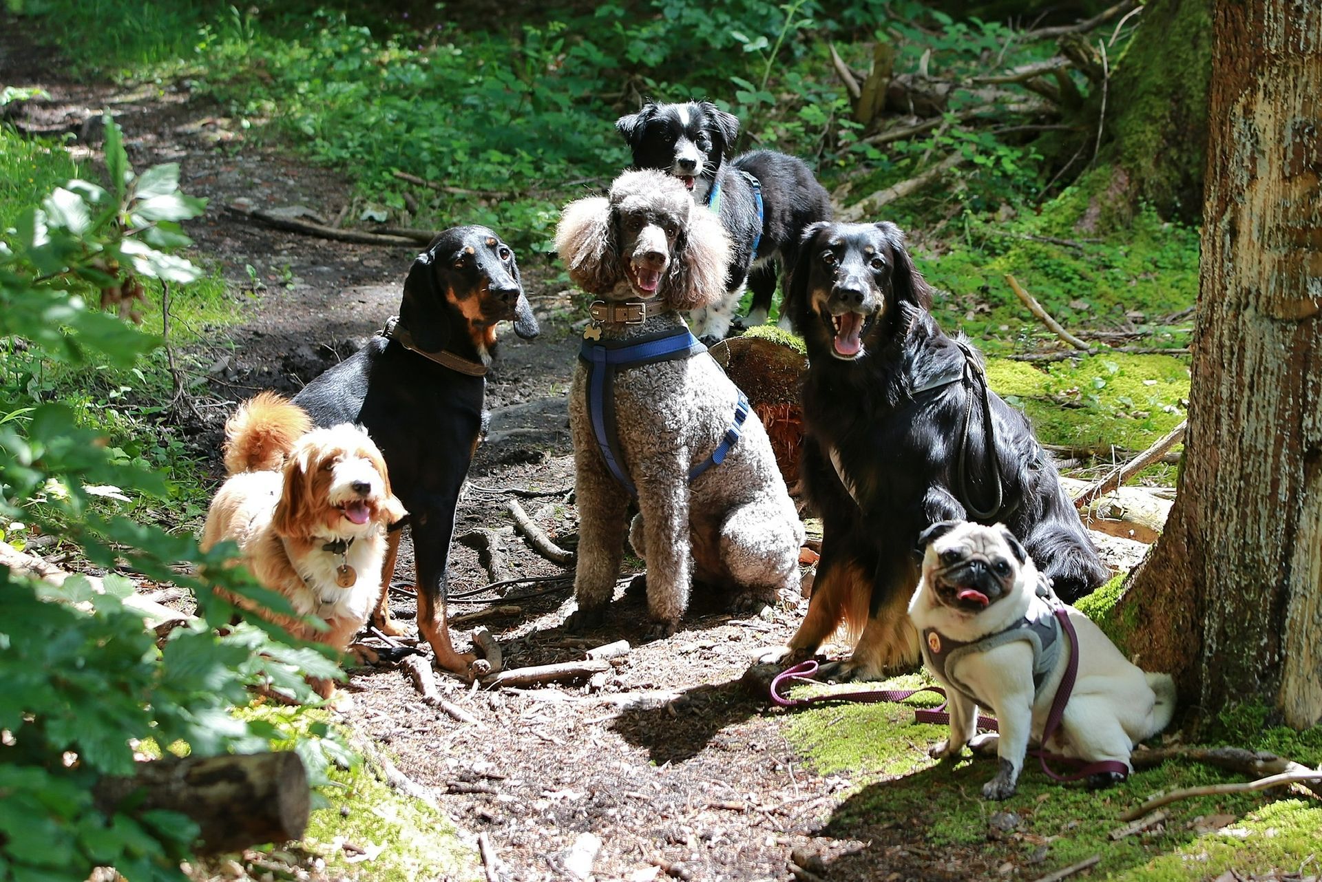 Auf unseren etwa 90-minütigen Nature Walks biete ich meinen Hundegruppen eine ausgewogene Kombination aus Lauf-, Spiel-, Trainings- und Ruhephasen - für eine artgerechte Auslastung und mehr Ausgeglichenheit Ihres Hundes. Dabei üben wir auch am Grundgehorsam und trainieren wichtige Signale.